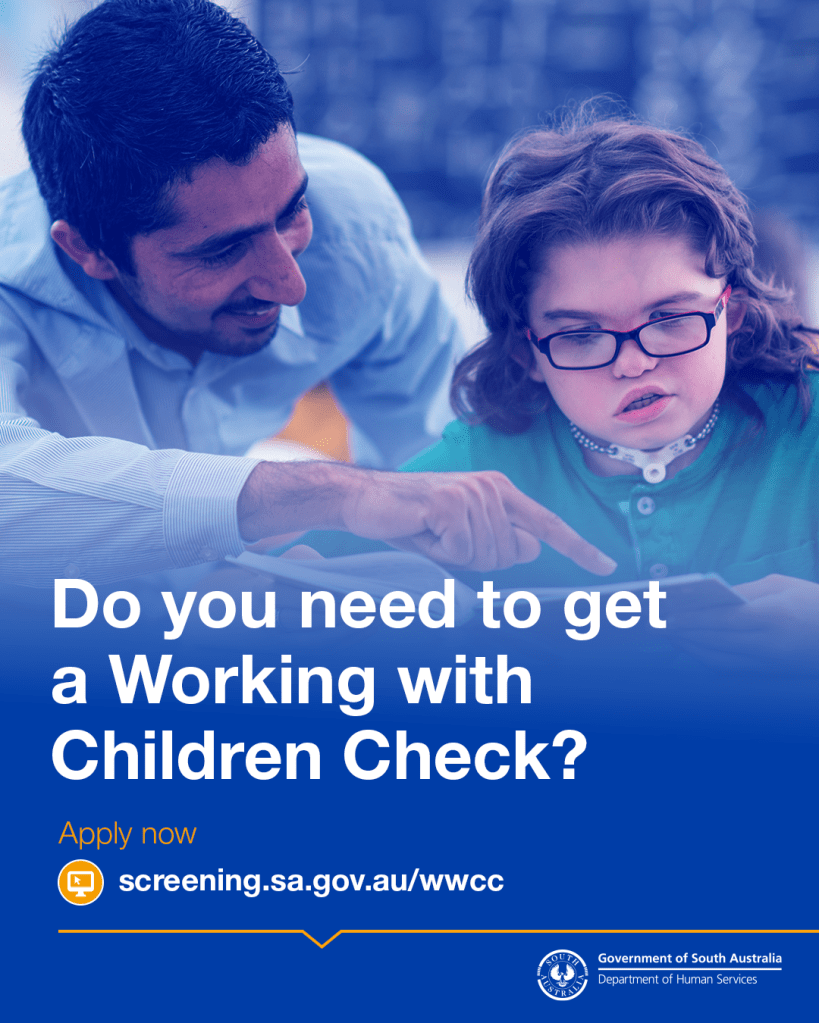 are required to have a valid Working with Children Check (WWCC).
